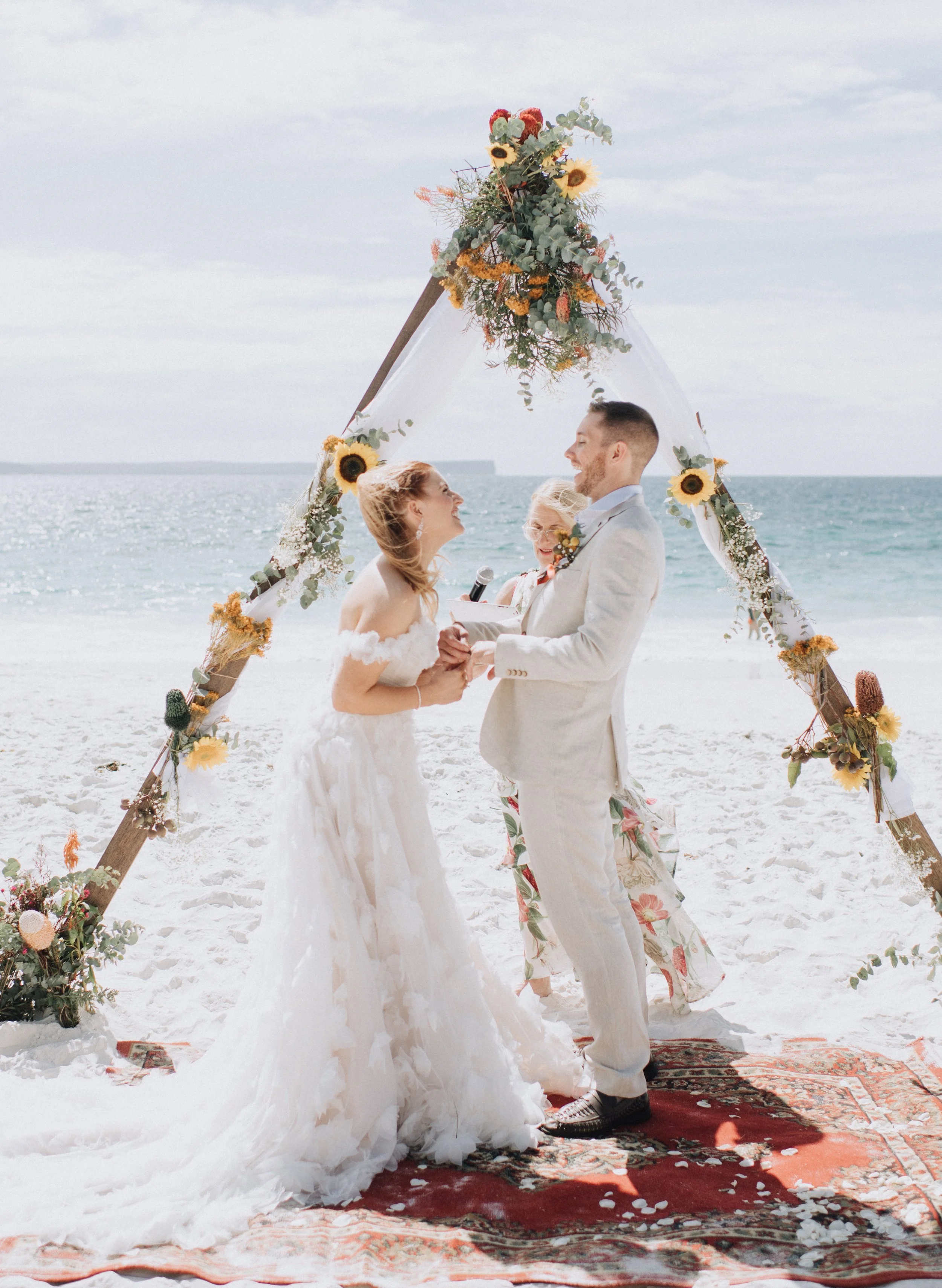 We could not thank Kim enough for everything she did and brought to our wedding ceremony. Kim was a pleasure and a kind hearted soul from the get go and we are so thankful we chose her to be our celebrant! We had a intimate ceremony on the beach with around 30 people and Kim brought love, respect to our passed loved ones, humour, storytelling and the perfect amount of sass to express our love for each other on our day. I highly reccomend Kim Hemsley as your celebrant, she is kind, thoughtful, listens to your story and beautifully blends in moments that are important to your journey. Thankyou so much Kim.,